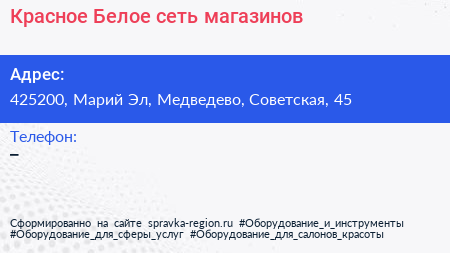 Красное & Белое, сеть магазинов по адресу 425200, Марий Эл, Медведево, Советская, 45 в дальнейшем Организация, размещена в следующих категориях: