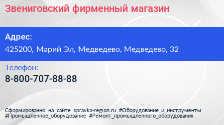 Звениговский, фирменный магазин по адресу 425200, Марий Эл, Медведево, Медведево, 32 в дальнейшем Организация, размещена в следующих категориях: