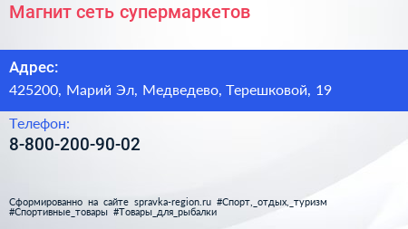 Магнит, сеть супермаркетов по адресу 425200, Марий Эл, Медведево, Терешковой, 19 в дальнейшем Организация, размещена в следующих категориях: