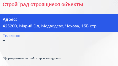 СтройГрад, строящиеся объекты по адресу 425200, Марий Эл, Медведево, Чехова, 15Б стр в дальнейшем Организация, размещена в следующих категориях: