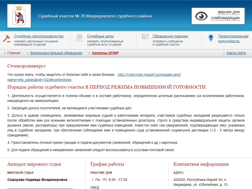 Мировые судьи Медведевского района по адресу 425200, Марий Эл, Медведево, Юбилейная, 12 в дальнейшем Организация, размещена в следующих категориях: