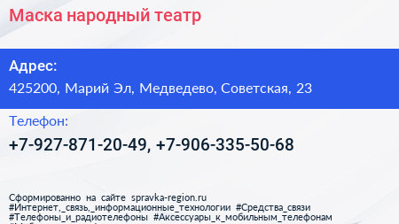 Маска, народный театр по адресу 425200, Марий Эл, Медведево, Советская, 23 в дальнейшем Организация, размещена в следующих категориях: