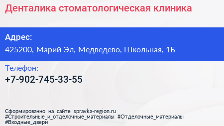 Денталика, стоматологическая клиника по адресу 425200, Марий Эл, Медведево, Школьная, 1Б в дальнейшем Организация, размещена в следующих категориях: