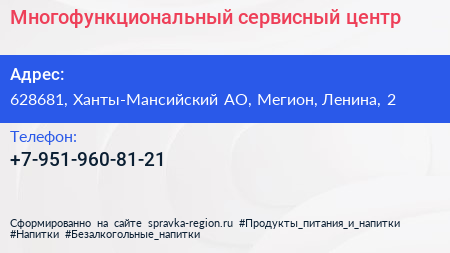 Многофункциональный сервисный центр по адресу 628681, Ханты-Мансийский АО, Мегион, Ленина, 2 в дальнейшем Организация, размещена в следующих категориях: