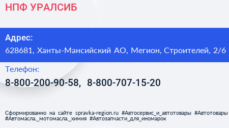 НПФ УРАЛСИБ по адресу 628681, Ханты-Мансийский АО, Мегион, Строителей, 2/6 в дальнейшем Организация, размещена в следующих категориях: