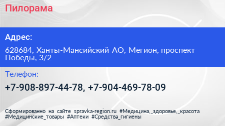 Пилорама по адресу 628684, Ханты-Мансийский АО, Мегион, проспект Победы, 3/2 в дальнейшем Организация, размещена в следующих категориях: