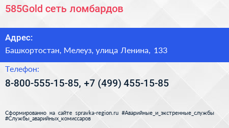 585Gold, сеть ломбардов по адресу Башкортостан, Мелеуз, улица Ленина, 133 в дальнейшем Организация, размещена в следующих категориях: