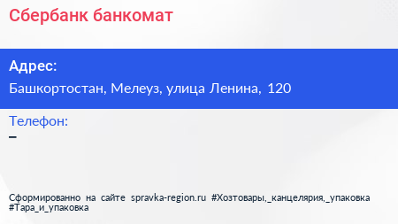 Сбербанк, банкомат по адресу Башкортостан, Мелеуз, улица Ленина, 120 в дальнейшем Организация, размещена в следующих категориях: