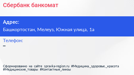 Сбербанк, банкомат по адресу Башкортостан, Мелеуз, Южная улица, 1а в дальнейшем Организация, размещена в следующих категориях: