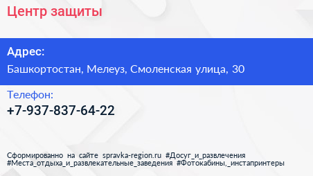 Центр защиты по адресу Башкортостан, Мелеуз, Смоленская улица, 30 в дальнейшем Организация, размещена в следующих категориях: