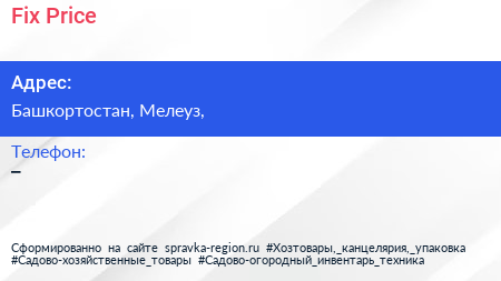 Fix Price по адресу Башкортостан, Мелеуз, в дальнейшем Организация, размещена в следующих категориях: