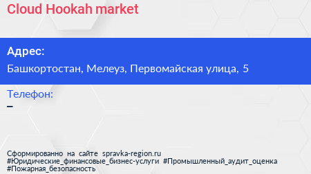 Cloud Hookah market по адресу Башкортостан, Мелеуз, Первомайская улица, 5 в дальнейшем Организация, размещена в следующих категориях: