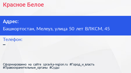 Красное & Белое по адресу Башкортостан, Мелеуз, улица 50 лет ВЛКСМ, 45 в дальнейшем Организация, размещена в следующих категориях: