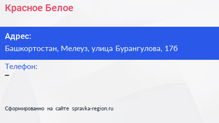 Красное & Белое по адресу Башкортостан, Мелеуз, улица Бурангулова, 17б в дальнейшем Организация, размещена в следующих категориях: