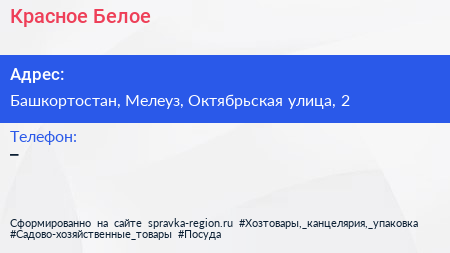 Красное & Белое по адресу Башкортостан, Мелеуз, Октябрьская улица, 2 в дальнейшем Организация, размещена в следующих категориях: