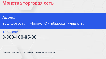 Монетка, торговая сеть по адресу Башкортостан, Мелеуз, Октябрьская улица, 3а в дальнейшем Организация, размещена в следующих категориях:
