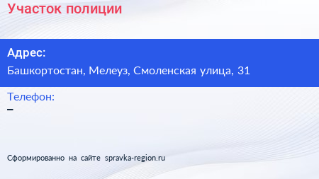 Участок полиции по адресу Башкортостан, Мелеуз, Смоленская улица, 31 в дальнейшем Организация, размещена в следующих категориях: