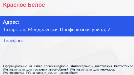 Красное&Белое по адресу Татарстан, Менделеевск, Профсоюзная улица, 7 в дальнейшем Организация, размещена в следующих категориях: