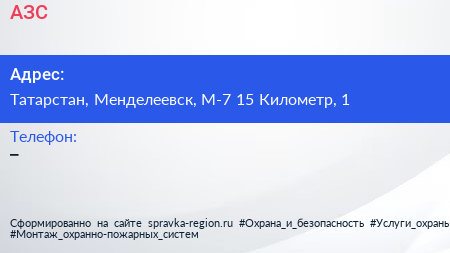 АЗС по адресу Татарстан, Менделеевск, М-7 15 Километр, 1 в дальнейшем Организация, размещена в следующих категориях: