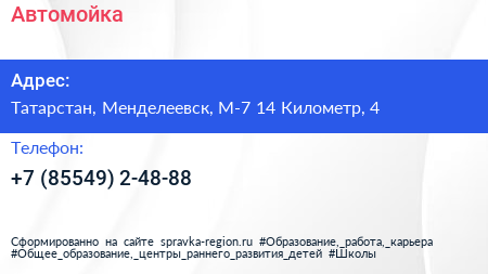 Автомойка по адресу Татарстан, Менделеевск, М-7 14 Километр, 4 в дальнейшем Организация, размещена в следующих категориях:
