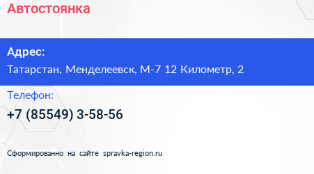 Адрес: Татарстан, Менделеевск, М-7 14 Километр, 3