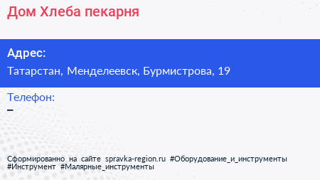 Дом Хлеба, пекарня по адресу Татарстан, Менделеевск, Бурмистрова, 19 в дальнейшем Организация, размещена в следующих категориях: