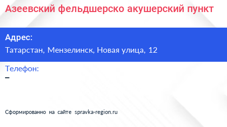 Азеевский фельдшерско-акушерский пункт по адресу Татарстан, Мензелинск, Новая улица, 12 в дальнейшем Организация, размещена в следующих категориях: