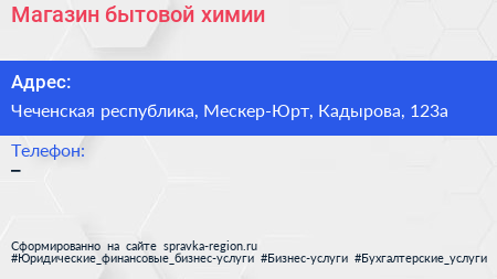 Магазин бытовой химии по адресу Чеченская республика, Мескер-Юрт, Кадырова, 123а в дальнейшем Организация, размещена в следующих категориях: