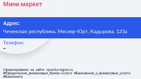 Мини-маркет по адресу Чеченская республика, Мескер-Юрт, Кадырова, 123а в дальнейшем Организация, размещена в следующих категориях: