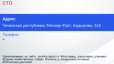 СТО по адресу Чеченская республика, Мескер-Юрт, Кадырова, 162 в дальнейшем Организация, размещена в следующих категориях: