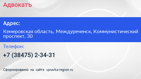Адвокатъ по адресу Кемеровская область, Междуреченск, Коммунистический проспект, 30 в дальнейшем Организация, размещена в следующих категориях: