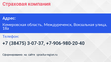 Страховая компания по адресу Кемеровская область, Междуреченск, Вокзальная улица, 18а в дальнейшем Организация, размещена в следующих категориях: