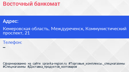 Восточный, банкомат по адресу Кемеровская область, Междуреченск, Коммунистический проспект, 21 в дальнейшем Организация, размещена в следующих категориях: