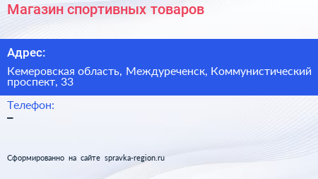 Магазин спортивных товаров по адресу Кемеровская область, Междуреченск, Коммунистический проспект, 33 в дальнейшем Организация, размещена в следующих категориях: