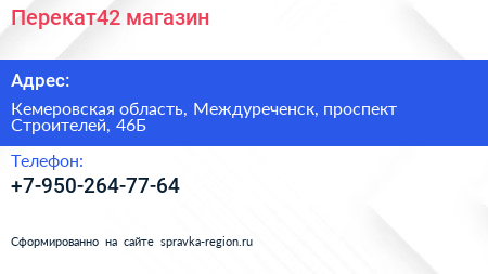 Перекат42, магазин по адресу Кемеровская область, Междуреченск, проспект Строителей, 46Б в дальнейшем Организация, размещена в следующих категориях: