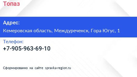 Топаз по адресу Кемеровская область, Междуреченск, Гора Югус, 1 в дальнейшем Организация, размещена в следующих категориях: