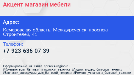 Акцент, магазин мебели по адресу Кемеровская область, Междуреченск, проспект Строителей, 41 в дальнейшем Организация, размещена в следующих категориях: