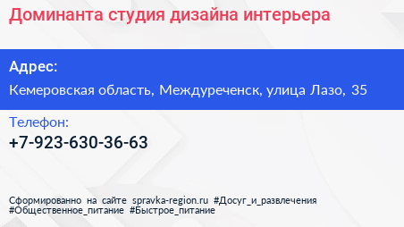 Доминанта, студия дизайна интерьера по адресу Кемеровская область, Междуреченск, улица Лазо, 35 в дальнейшем Организация, размещена в следующих категориях: