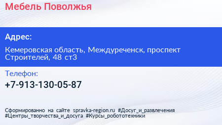 Мебель Поволжья по адресу Кемеровская область, Междуреченск, проспект Строителей, 48 ст3 в дальнейшем Организация, размещена в следующих категориях: