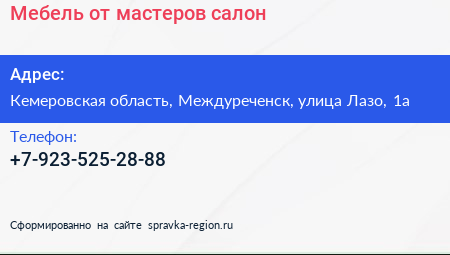 Мебель от мастеров, салон по адресу Кемеровская область, Междуреченск, улица Лазо, 1а в дальнейшем Организация, размещена в следующих категориях: