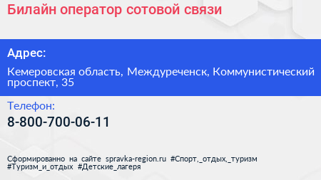 Билайн, оператор сотовой связи по адресу Кемеровская область, Междуреченск, Коммунистический проспект, 35 в дальнейшем Организация, размещена в следующих категориях: