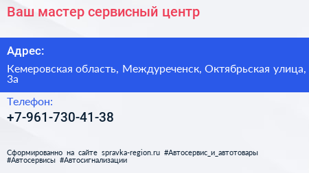 Ваш мастер, сервисный центр по адресу Кемеровская область, Междуреченск, Октябрьская улица, 3а в дальнейшем Организация, размещена в следующих категориях: