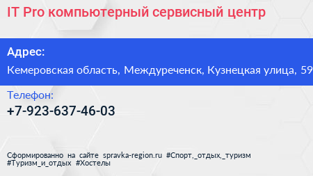 IT Pro, компьютерный сервисный центр по адресу Кемеровская область, Междуреченск, Кузнецкая улица, 59 в дальнейшем Организация, размещена в следующих категориях:
