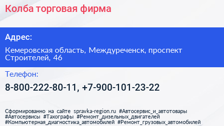 Колба, торговая фирма по адресу Кемеровская область, Междуреченск, проспект Строителей, 46 в дальнейшем Организация, размещена в следующих категориях: