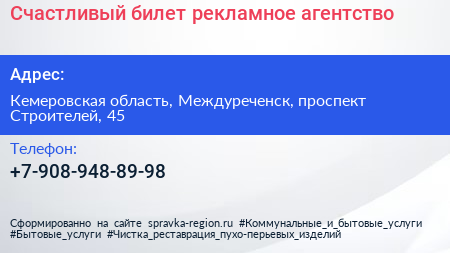 Счастливый билет, рекламное агентство по адресу Кемеровская область, Междуреченск, проспект Строителей, 45 в дальнейшем Организация, размещена в следующих категориях: