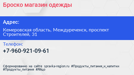 Броско, магазин одежды по адресу Кемеровская область, Междуреченск, проспект Строителей, 31 в дальнейшем Организация, размещена в следующих категориях: