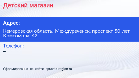 Детский магазин по адресу Кемеровская область, Междуреченск, проспект 50 лет Комсомола, 42 в дальнейшем Организация, размещена в следующих категориях: