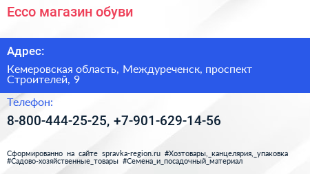 Ecco, магазин обуви по адресу Кемеровская область, Междуреченск, проспект Строителей, 9 в дальнейшем Организация, размещена в следующих категориях: