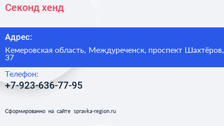 Секонд-хенд по адресу Кемеровская область, Междуреченск, проспект Шахтёров, 37 в дальнейшем Организация, размещена в следующих категориях: