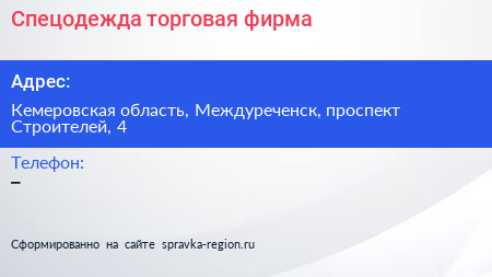 Спецодежда, торговая фирма по адресу Кемеровская область, Междуреченск, проспект Строителей, 4 в дальнейшем Организация, размещена в следующих категориях: